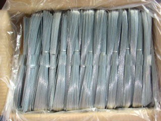 包塑絲的深加工制品有很多,都是方便綁扎的各種形狀的綁絲產(chǎn)品,比如:包塑扣絲,小盤絲,密排絲,U型絲,捆絲等等,有的折成彎,有的擰成鉤和圈,在綁扎的時候用工具把綁絲擰起來,擰緊,就打好了一個包裝,包塑絲做出來的綁絲,表面的塑料有一定的彈性,不易損壞產(chǎn)品表面。